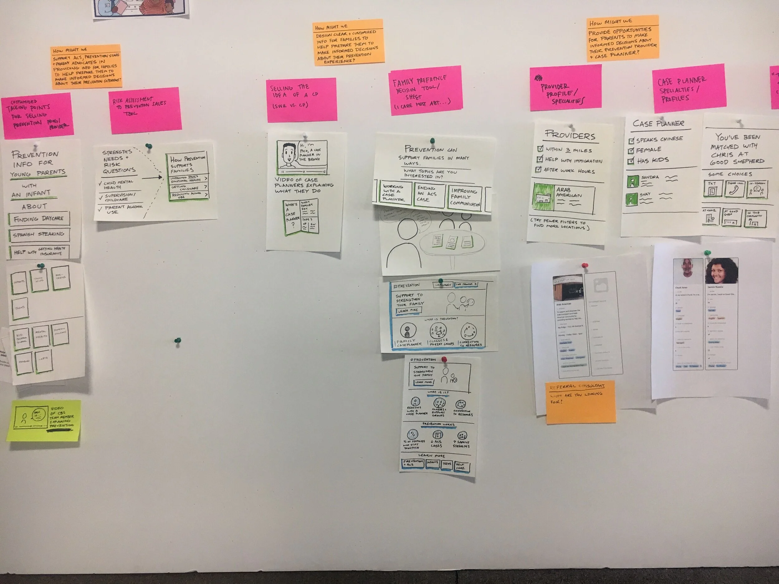 We defined a set of key moments for a future family-centered referral experience. We used used these moments to ground our prototyping work.