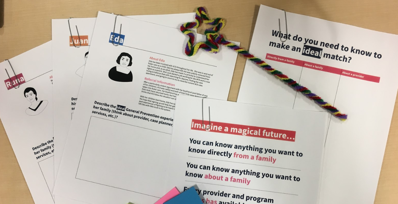 Personas helped ground a generative exercise with referral staff to surface all the information they would want to make a good referral for a family. And a little magic always helps to give public servants permission to dream.
